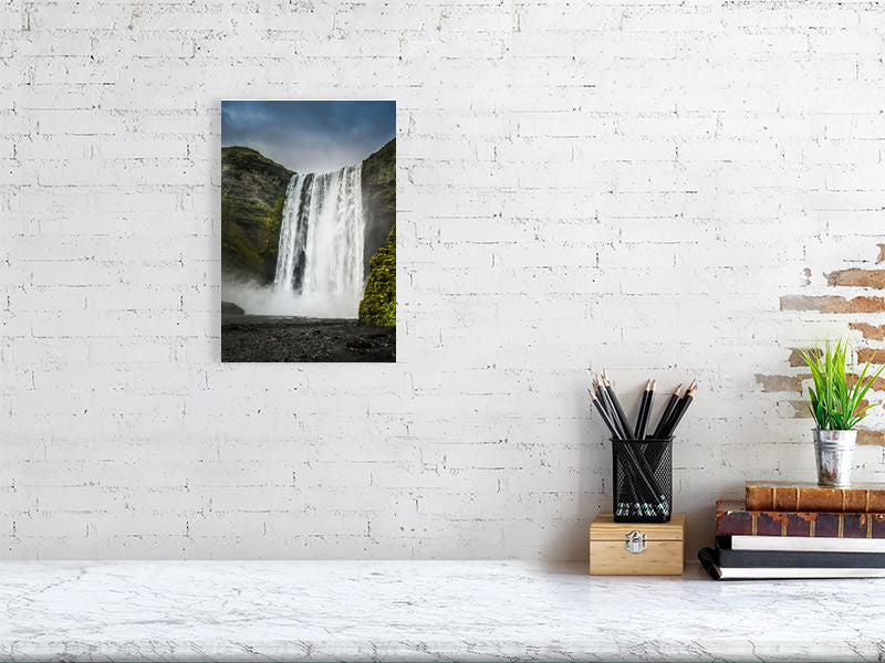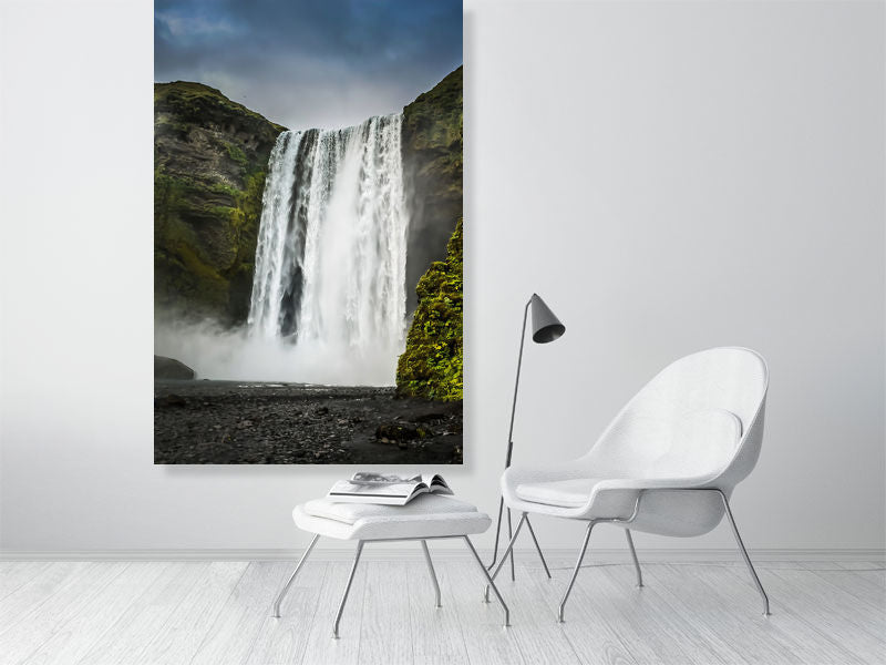 Caption: This is the Skogafoss waterfalls. We visited here twice because it is such a beautiful place. The first time it was raining. The second time, the rain had caused the falls to increase and they were powerful and majestic.